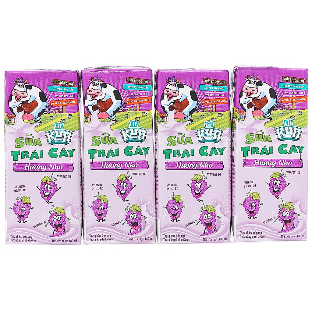 - Hương vị nho kết hợp cùng độ ngọt vừa phải của sữa tạo ra sự cân bằng, khiến trẻ em thích thú và dễ dàng tiêu thụ hàng ngày.
