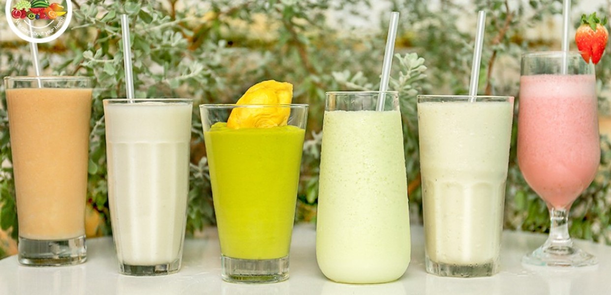 - Cách làm: Trái cây được xay nhuyễn cùng sữa chua hoặc sữa tươi, thêm đá lạnh để tạo sự mát lạnh.