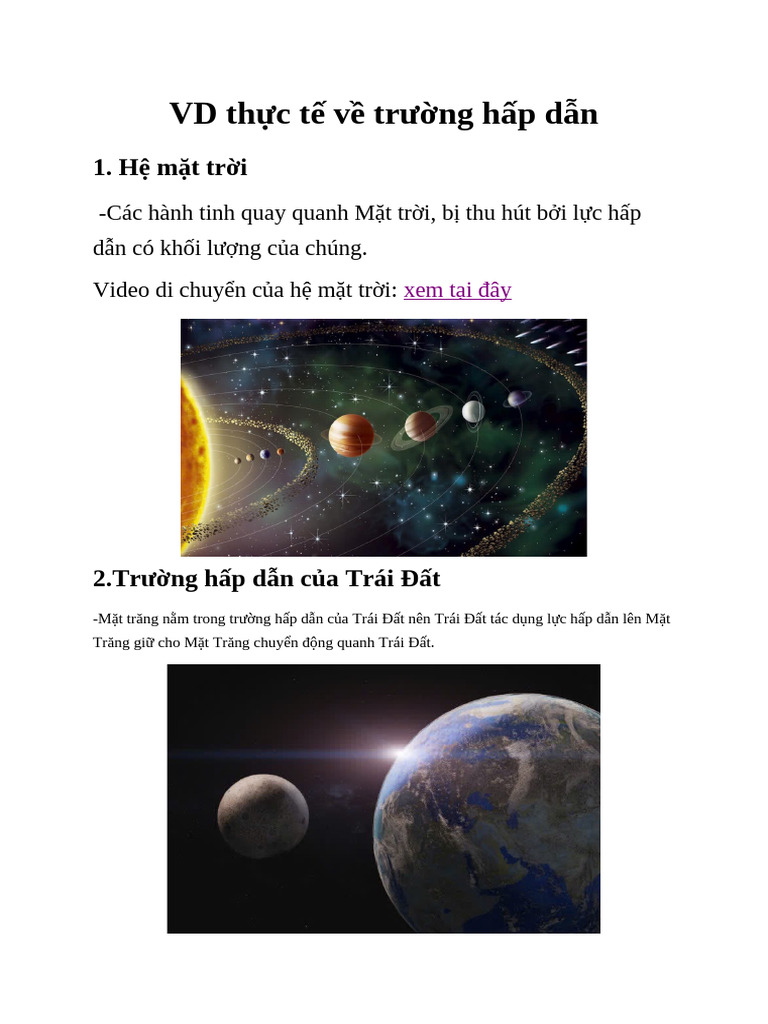 Lực hấp dẫn là một trong những yếu tố quan trọng nhất trong tự nhiên, ảnh hưởng đến nhiều hiện tượng tự nhiên mà chúng ta quan sát hàng ngày. Dưới đây là một số hiện tượng nổi bật liên quan đến lực hấp dẫn: